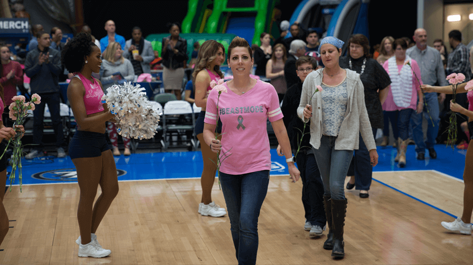 it was a fun and festive night in which the Legends players donned pink, as did their dancers and fans, in celebration of Helping Women Now. We again had lots of fun engaging with fans and followers on social media using the hashtag: #LegendsPinkNight. And, most importantly, we again honored the brave survivors in the arena and took a moment to reflect on how many fans—and their families—had been touched in some way by breast cancer.