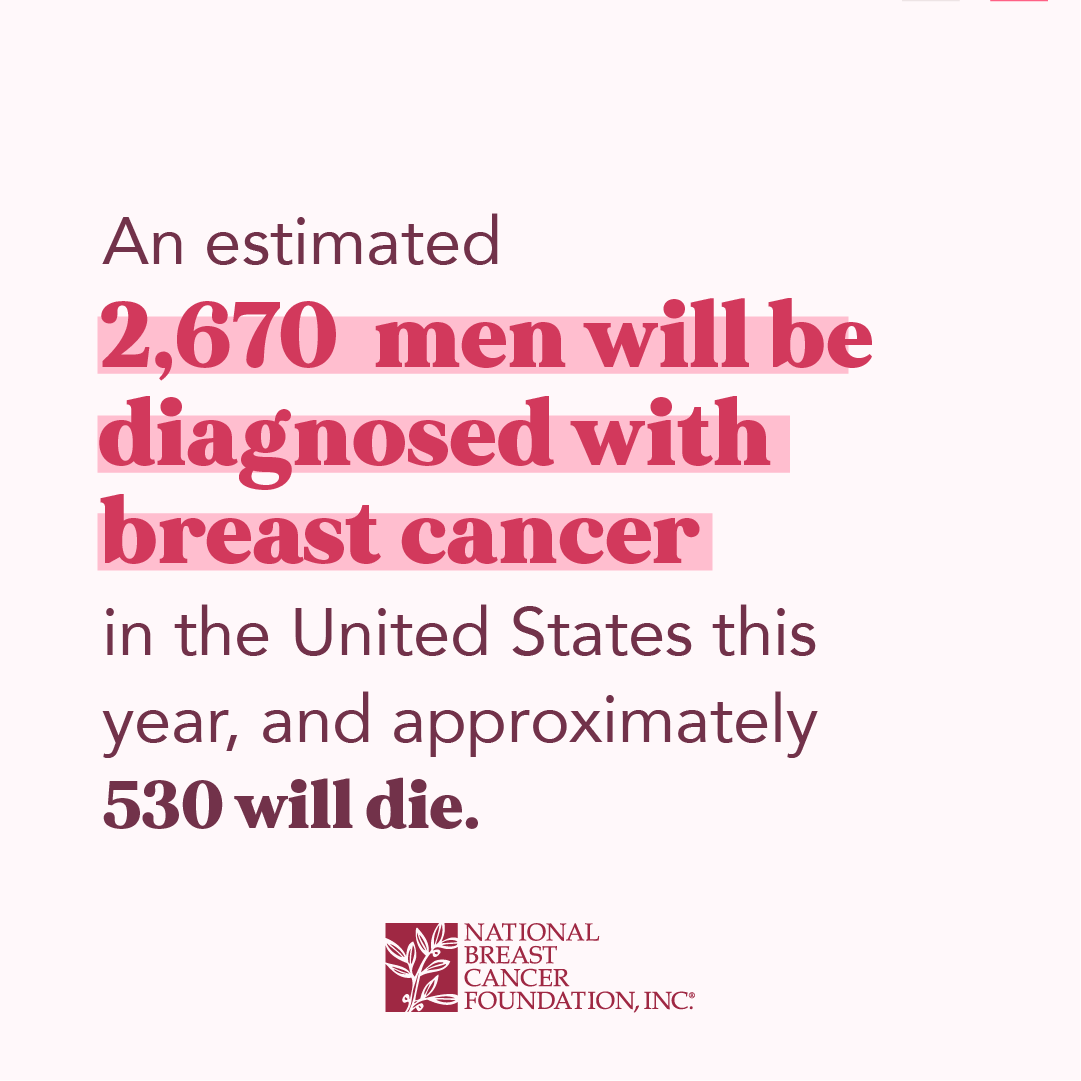 An estimated 2,670 men will be diagnosed with breast cancer in the United States this year, and approximately 530 will die.