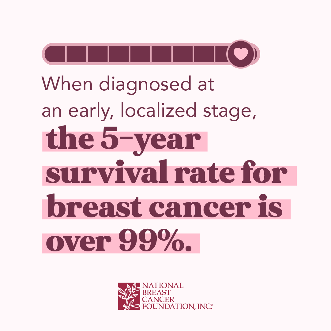 When diagnosed at an early, localized stage, the 5-year relative survival rate for breast cancer is over 99%.